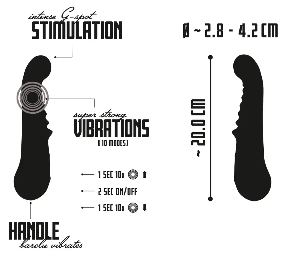 Ar 10 vibrācijas režīmiem viegli pielāgojiet intensitāti un pārslēdzieties starp iestatījumiem ar vienkāršu pogas nospiešanu. Samtainā, mīkstā pieskāriena tekstūra uzlabo komfortu un baudu saskarē ar ādu.