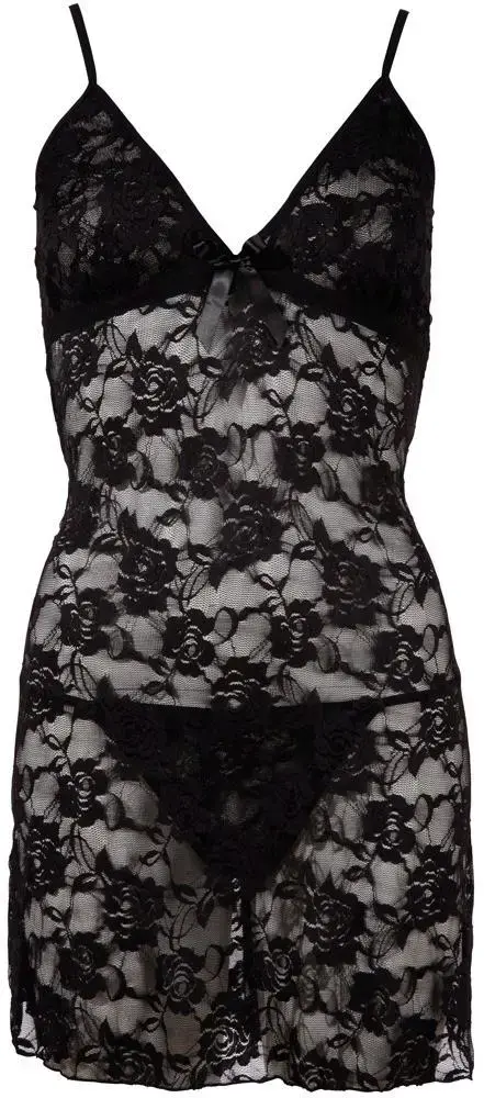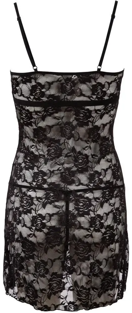 Nedaudz piegriezuma negližē no ziedu mežģīnēm ar lencīšu rotājumu zem krūtīm. Komplektā iekļautas pieskaņotas stringi. Lieliski piemērots pavedinošiem vakariem un romantiskām reizēm.