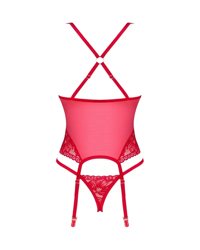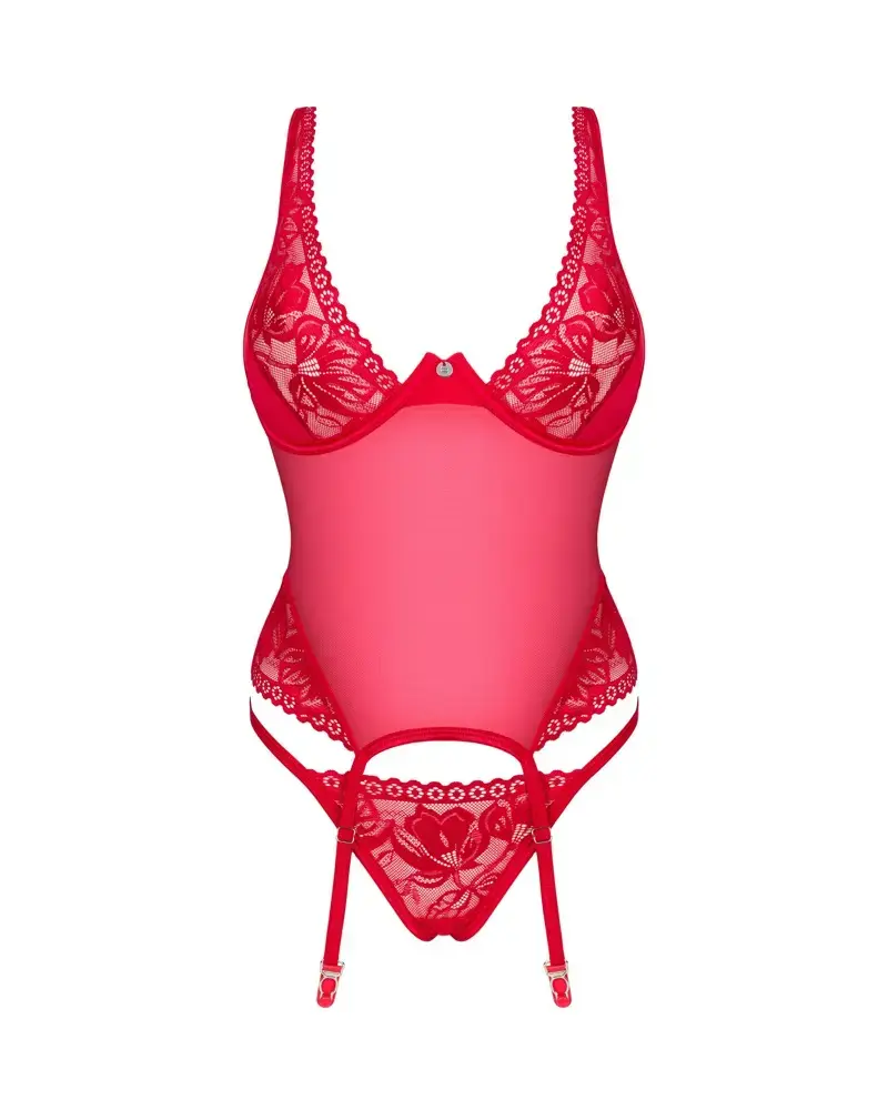 Tõstke magamistoas temperatuuri OBS Lacelove korseti ja stringide komplektiga. See sensuaalne intensiivset punast värvi komplekt rõhutab suurepäraselt teie figuuri, samas kui pitsist detailid tõmbavad palju kuumi pilke.
