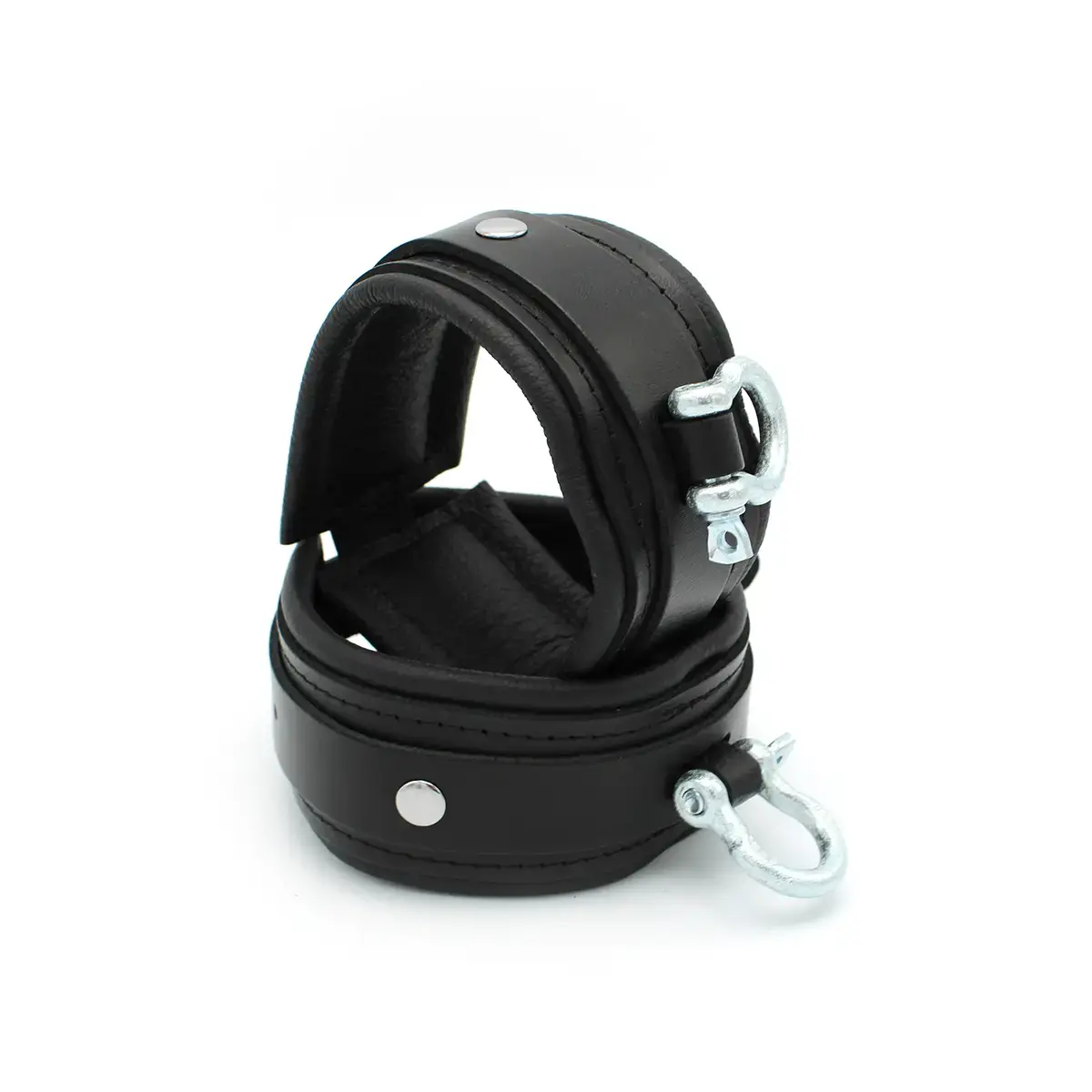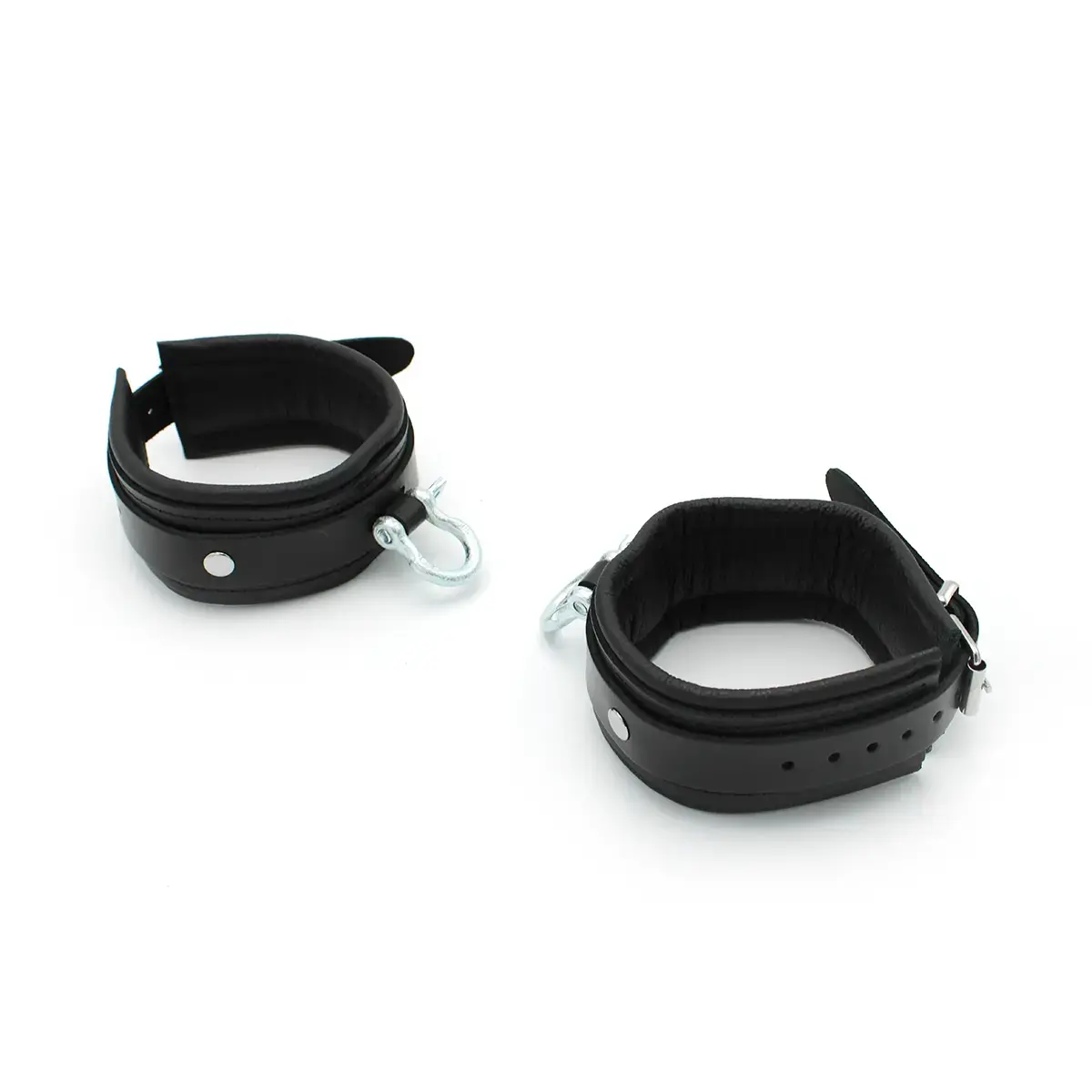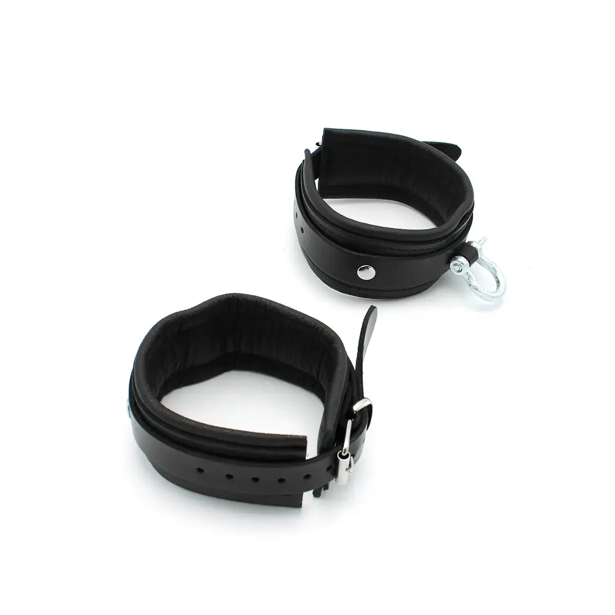 Elevate your bondage adventures with the BDSM Real Leather Ankle Cuffs with Heavy Metal Shackle. Embrace the thrill of restraint and submission as you delve into a world of pleasure and exploration.