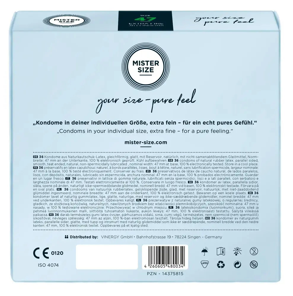 Ощутите идеальную посадку с презервативами Mister Size 47 мм, созданными для того, чтобы ощущаться как вторая кожа для максимальной чувствительности. Эти ультратонкие прозрачные презервативы изготовлены из натурального латекса и имеют резервуар на конце для дополнительного комфорта.