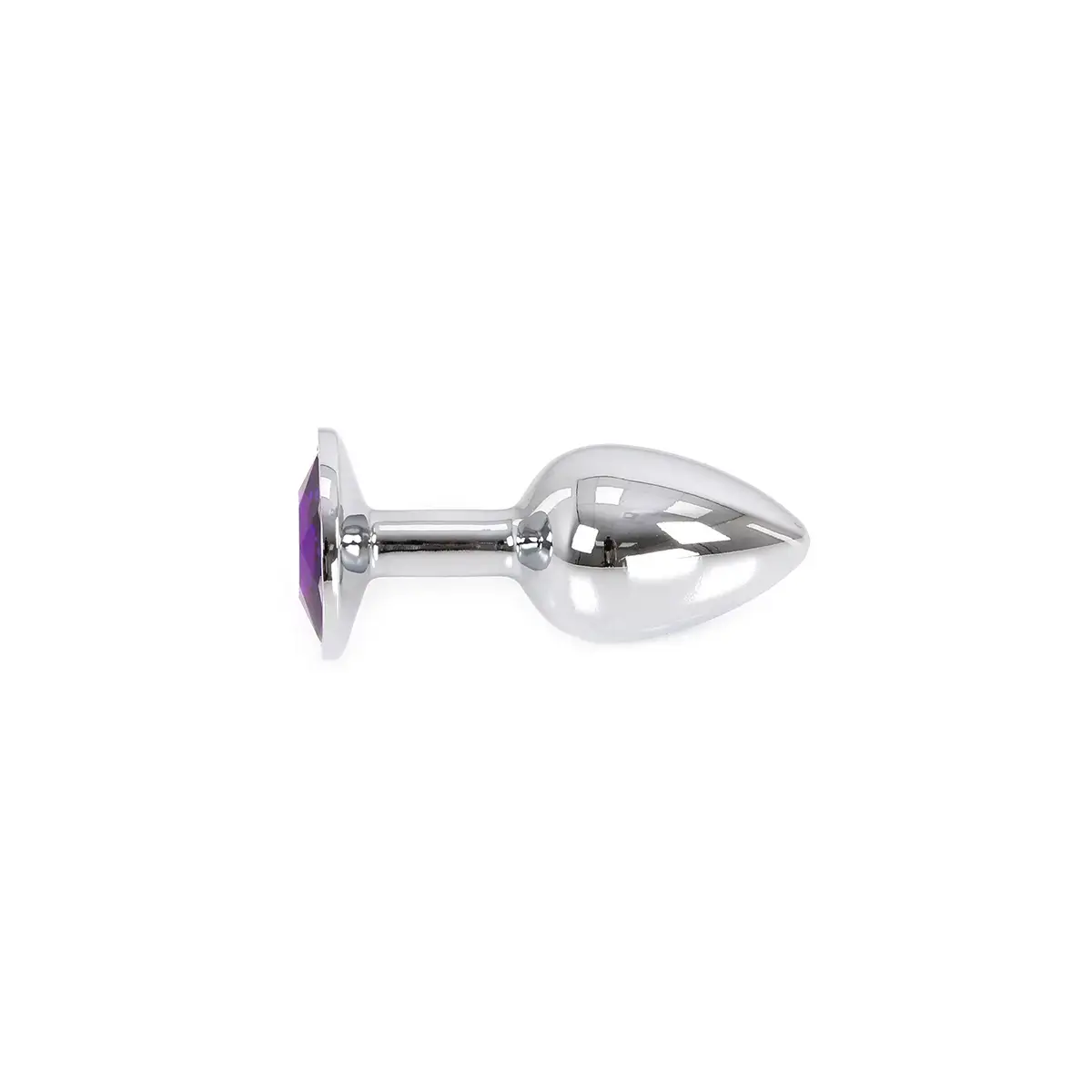 Šis elegants, mazs alumīnija anālais spraudnis ar klasisku sudraba metāla dizainu un platu, violetu mirdzošu dārgakmens pamatni piešķirs jūsu intīmajām rotaļām greznības un izsmalcinātības pieskārienu.