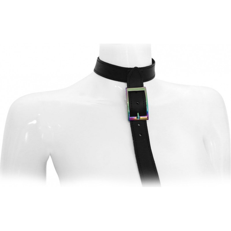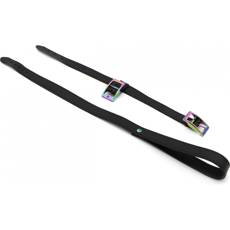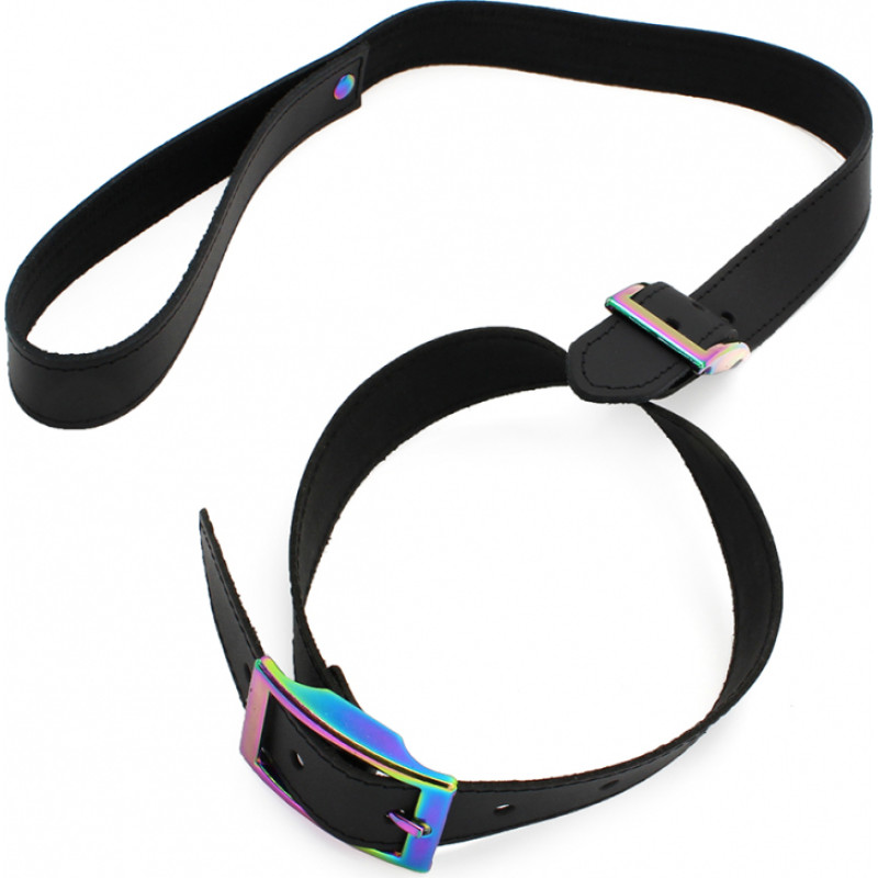 Kiotos Leather Leather Collar with leash Rainbow