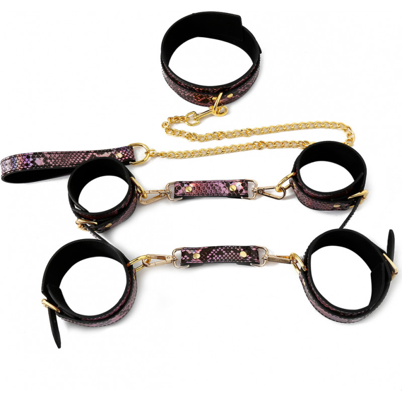 Kiotos Leather 3 Piece BDSM Set Gold/Pink Reptile