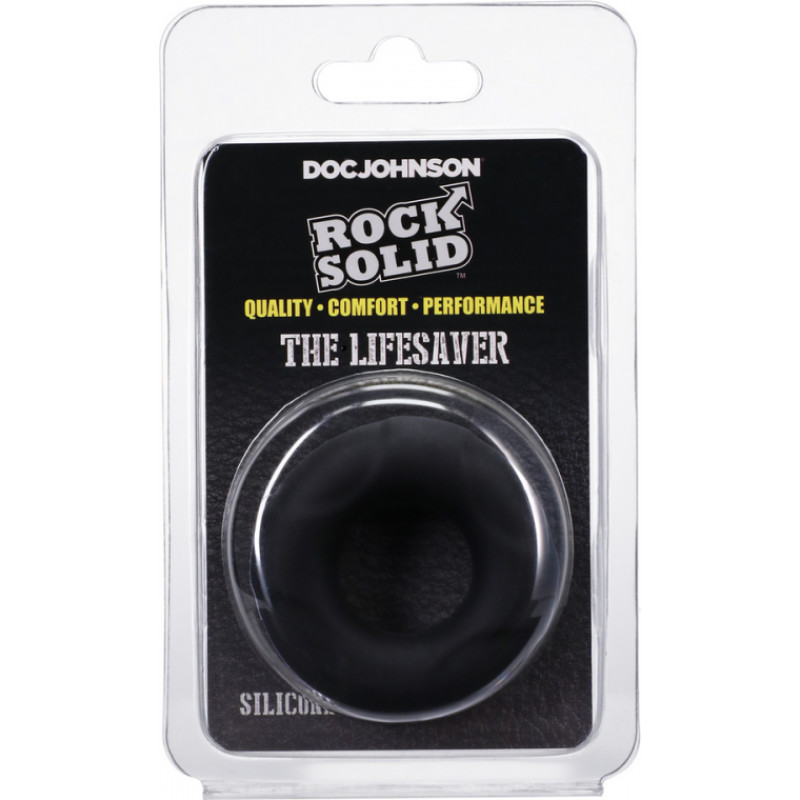 The Lifesaver has the classic cock ring lifebuoy shape users love, made from silicone with an ultra-smooth and soft finish. It's durable, unscented, and can stretch while retaining its original shape. Rock Solid cock rings enhance size and thickness for longer, harder erections, and are completely body-safe.