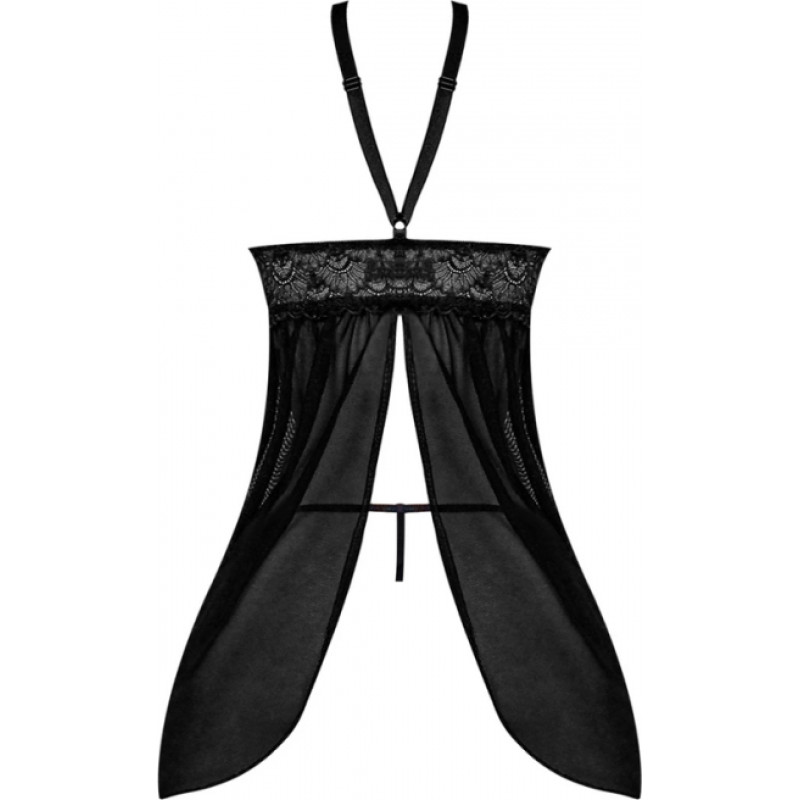 Magic Silk Babydoll ar atvērtu muguru un G-stīgu komplektu - 2X - melns
