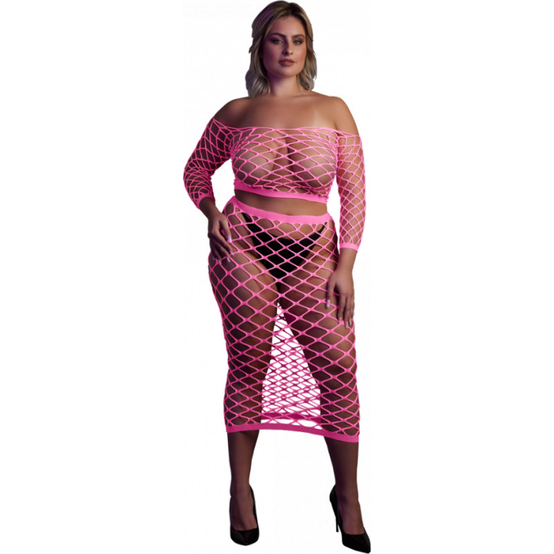 Ouch! By Shots Tops ar garām piedurknēm un garie svārki - liela izmēra - neona rozā