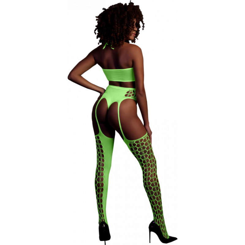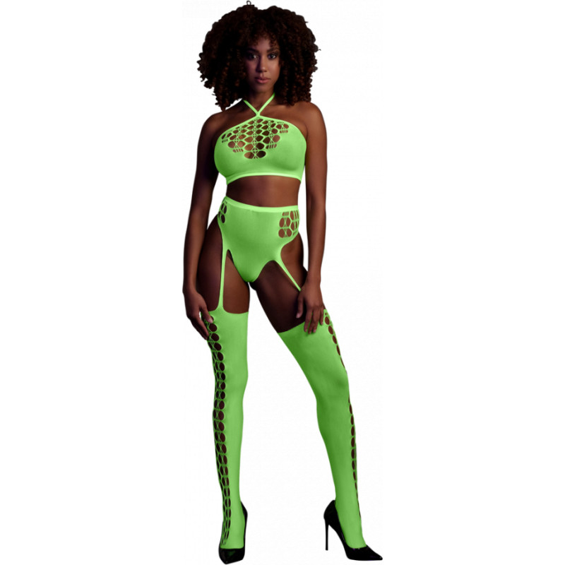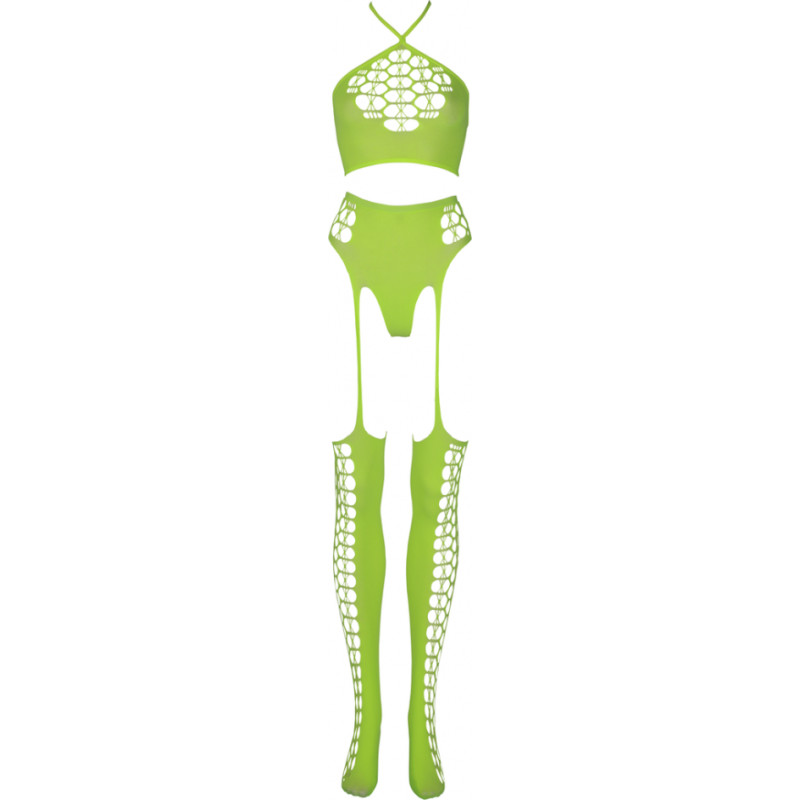 Ouch! By Shots Divdaļīgs ar Crop Top un Zeķes - One Size - Neon Green