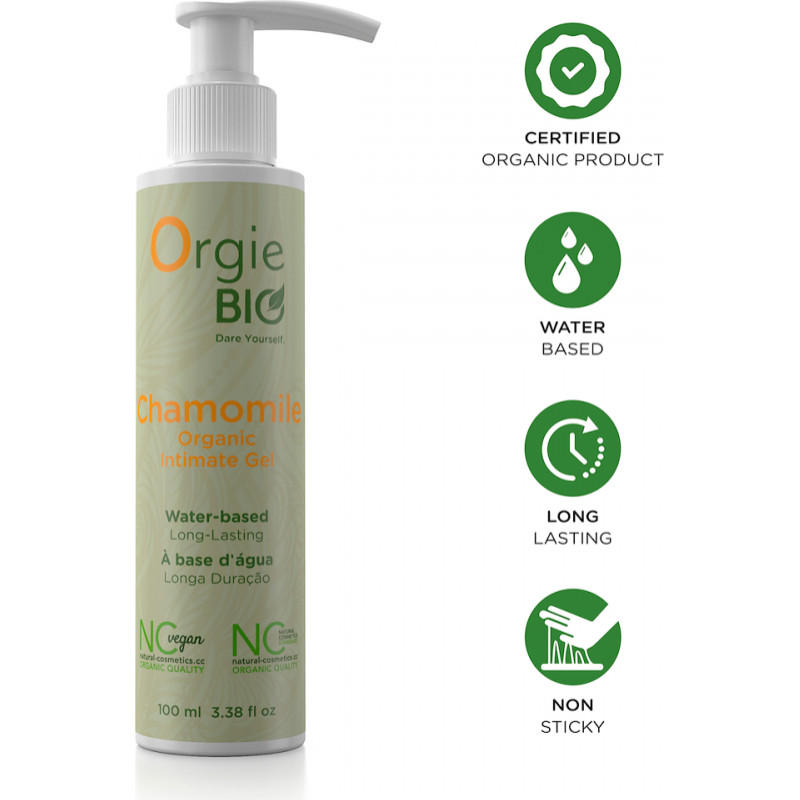 Chamomile Is A Must-Have In The Best Skin Care Products. It Has Several Beneficial Functions For The Skin: Antifungal, Antibacterial, Antiseptic And It Acts In Conjunction With Other Ingredients Of The Water-Based Formula Of Chamomile Intimate Gel, Being All Of Them Derived From Organic And Sustainable Origin, Free Of Chemical Products.Orgie Bio Allies Pleasure, Environment Respect And Ecological Awareness.