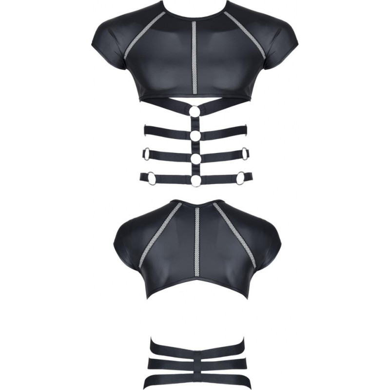 Regnes Fetish Planet męski t-shirt z wetlooka z dekoracyjnymi wstawkami z taśmy i gumy XL