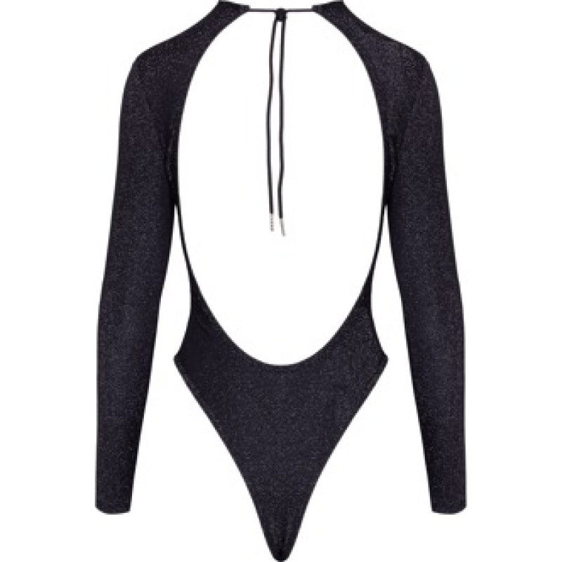 Silver glamour that's comfortable! The long-sleeved thong body from Cottelli PARTY is made out of black material with integrated glittery silver-coloured material. It is soft and stretchy for a very comfortable fit. It is breathtakingly backless and there is a cord at the back of the neck that has an adjustable fastener. The thong style gives it a high leg look, which emphasises the legs and buttocks in a stunning way. There is a practical hook fastener in the crotch area. 60% polyamide, 30% polyester, 10% spandex.