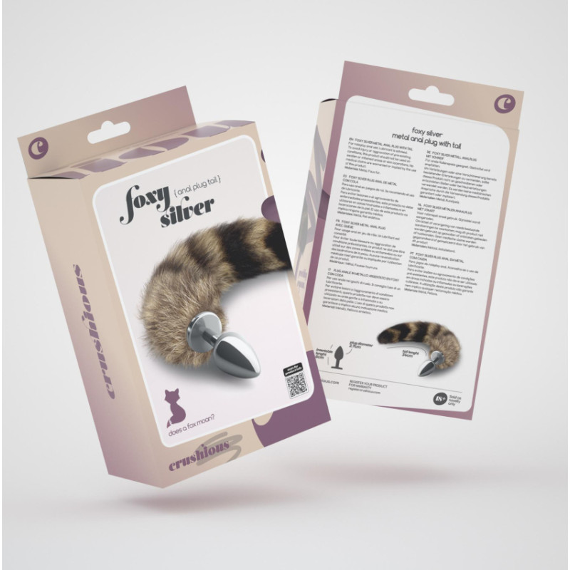 Crushious Foxy Silver — Plug Anal de Metal un Cola — Plata/Marrón