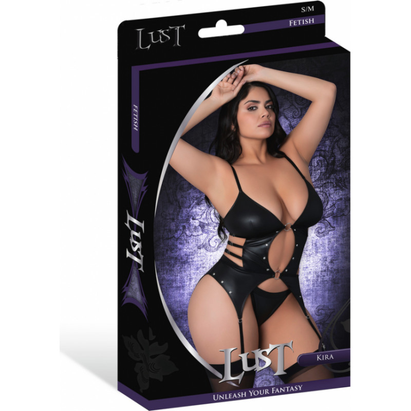 Male Power Kira - Atvērta priekšpuse basku biksītes ar zeķturiem un stringiem - 2x - melnas