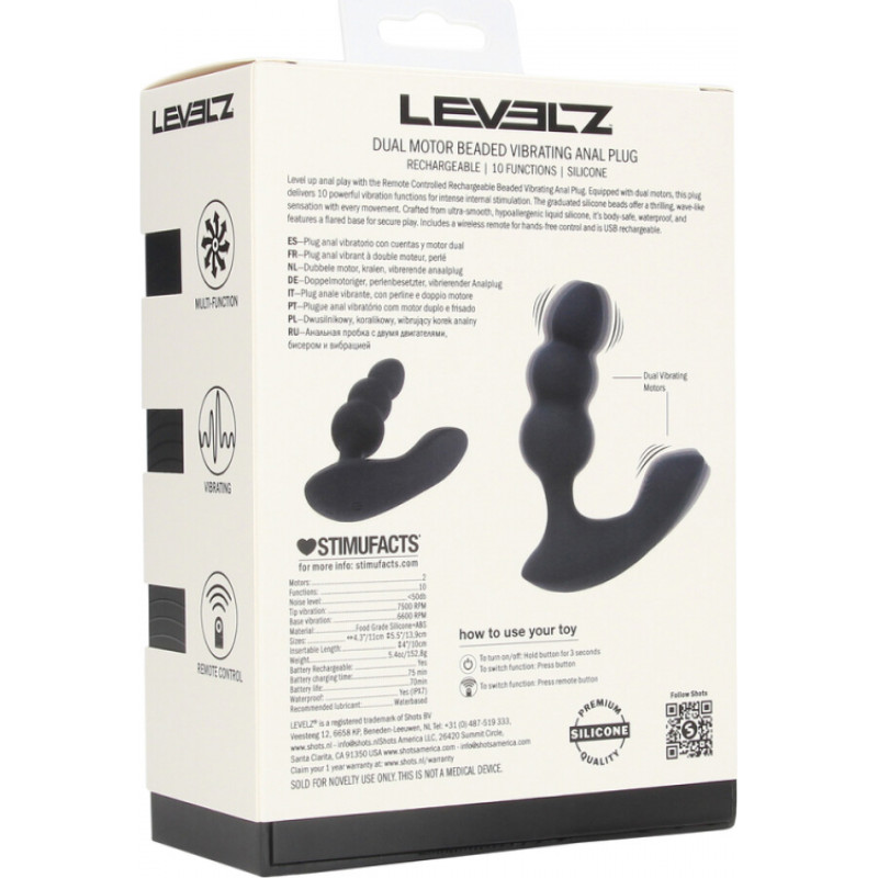 Levelz By Shots Divu motoru tālvadības pults vibrējošs šķidra silikona prostatas stimulators - melns