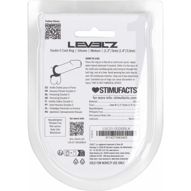 Levelz By Shots Dubultais silikona locekļa gredzens - M - melns