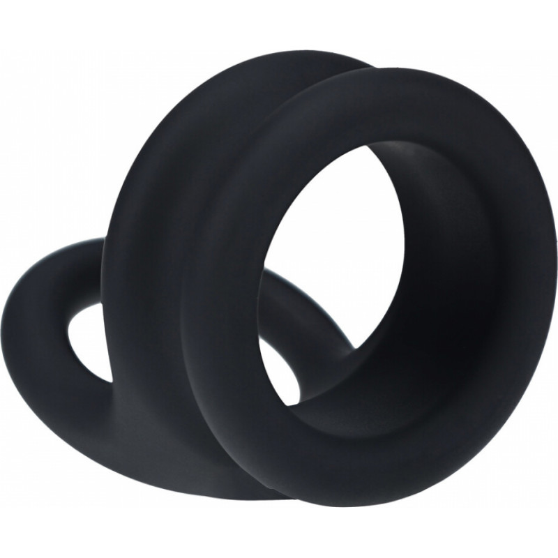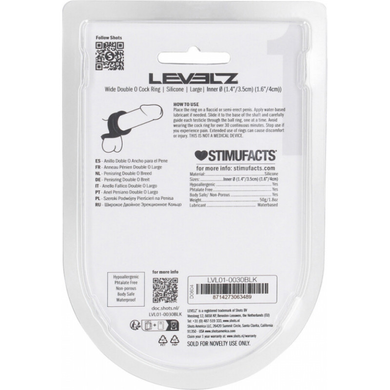Levelz By Shots Plats dubultais O silikona erekcijas gredzens - L - melns