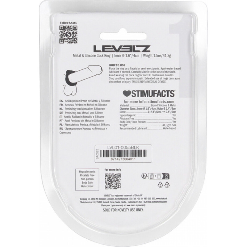 Levelz By Shots Metāla un silikona erekcijas gredzens - melns