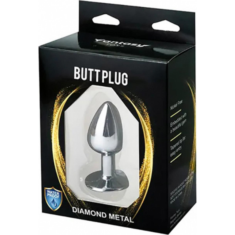 Fantasy Silver Medium Butt Plug with Blue Diamond