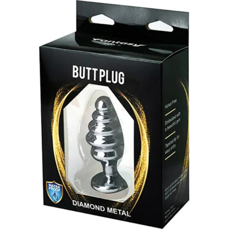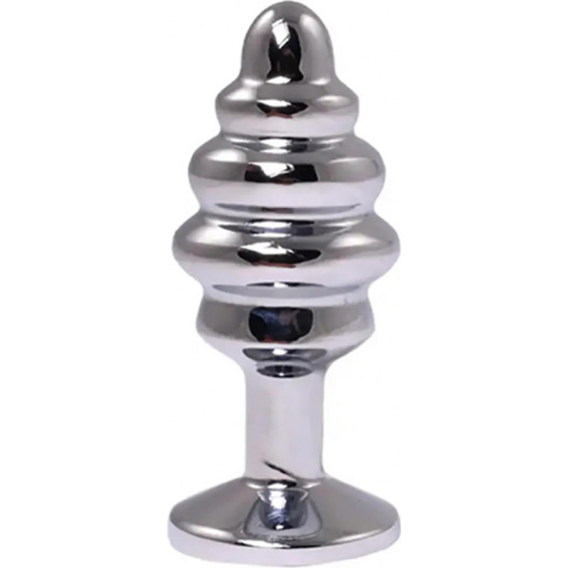 Fantasy Silver medium ribbed butt plug with pink crystal
