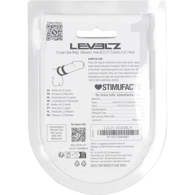 Levelz By Shots 2 Loop Silicone Cockring - Black