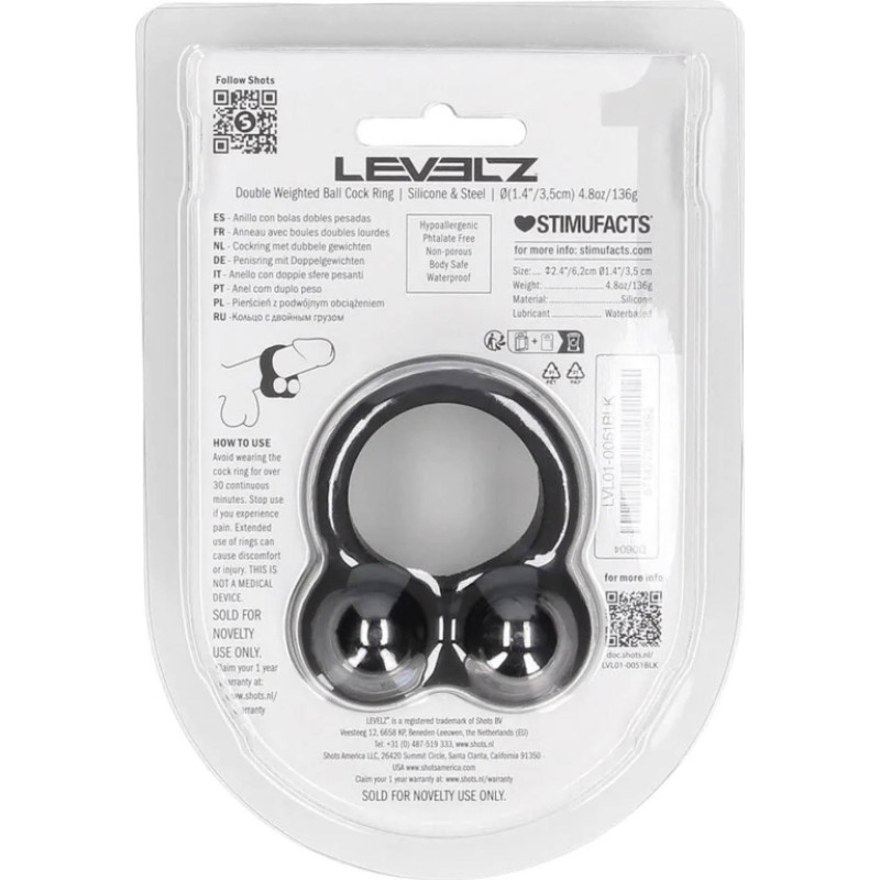 Levelz By Shots Liquid Silicone Double Weighted Ball Cockring - Black