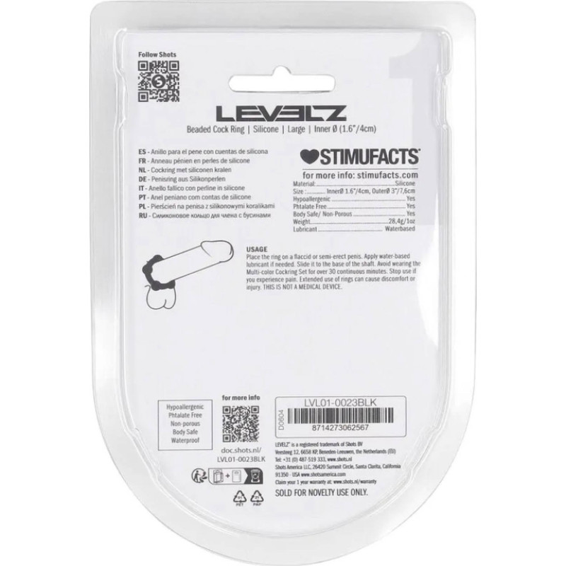Levelz By Shots Beaded Silicone Cockring - L - 45mm - Black