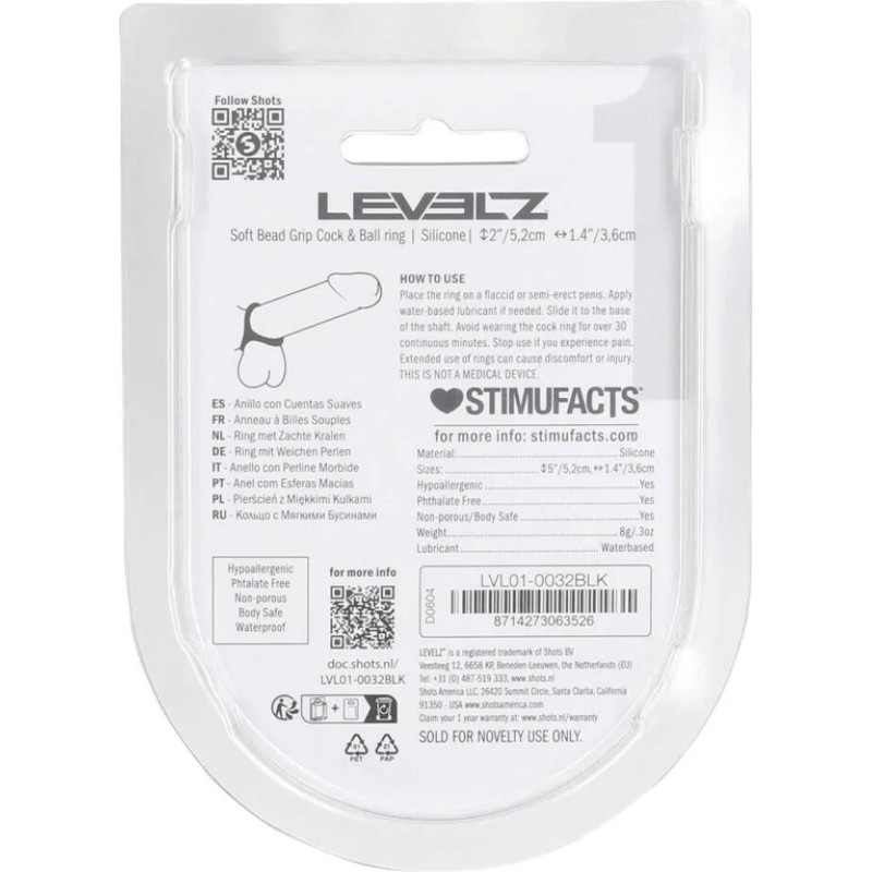 Levelz Soft Bead Grip Silicone Cock and Ball Ring - Black