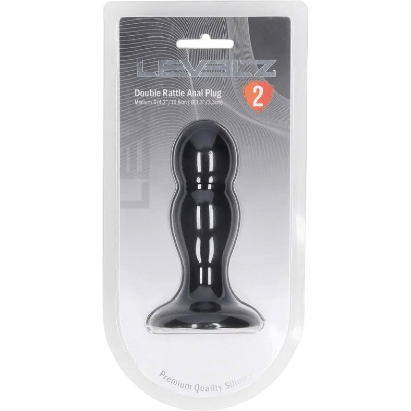 Levelz Double Rattle Liquid Silicone Anal Plug - M - Black