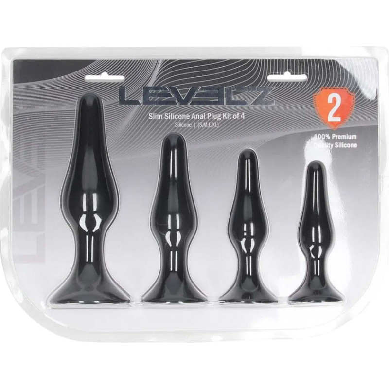 Levelz Slim Silicone Anal Plug Set of 4 - S/M/L/XL - Black