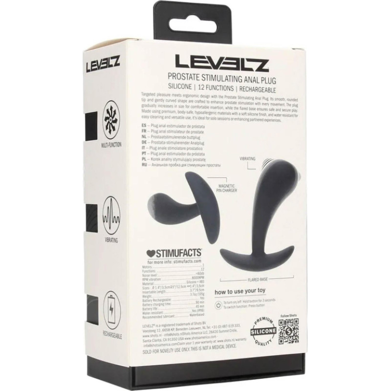 Levelz Vibrating Silicone Prostate Stimulator Anal Plug - M - Black
