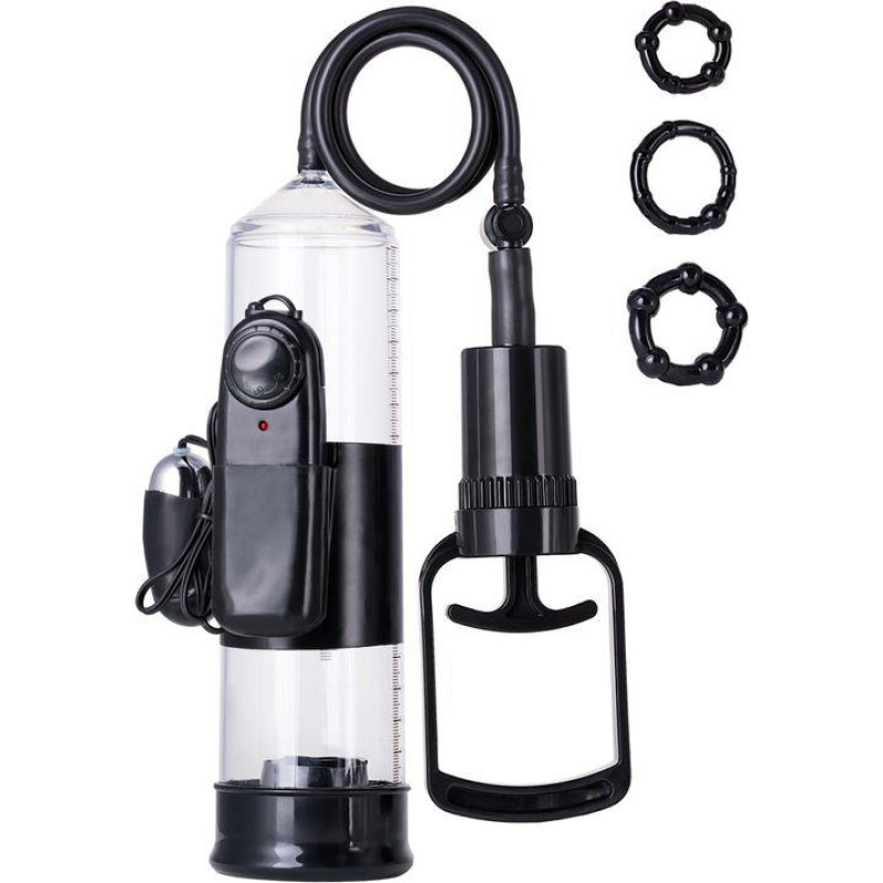 A-Toys , Penis Pump Coal, with vibro, PVC, Transparent, 22,8 cm