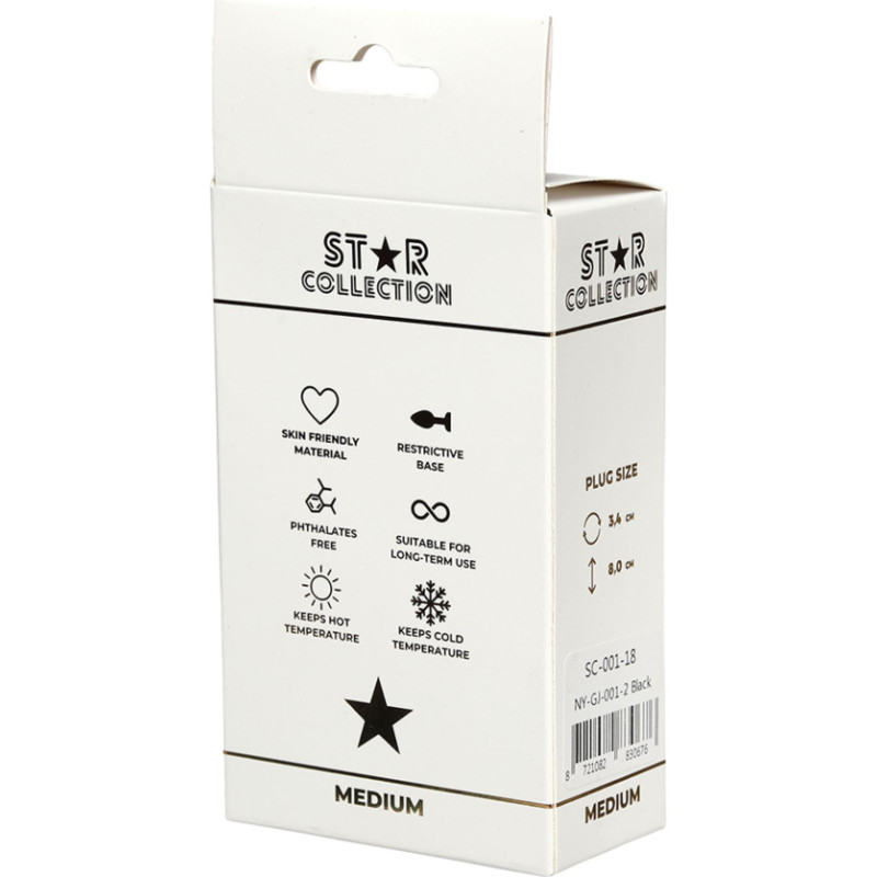 Star Collection - Black Silicone Anal Plug M - Light Blue Stone