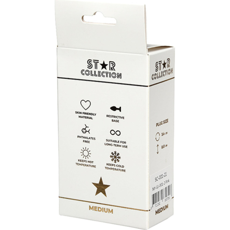 Star Collection - Pink Silicone Anal Plug M - Clear Stone