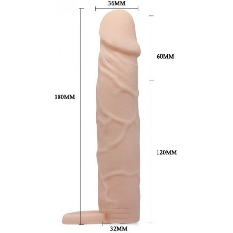 This penis extender is a thick, looks and feels huge. From its knobby, engorged head, past some folds and along it's veiny textures, you're in for some big tool action with stretchy sleeve that fits snugly around your shaft. This lifelike material is firm, yet squeezable, just like the real thing.