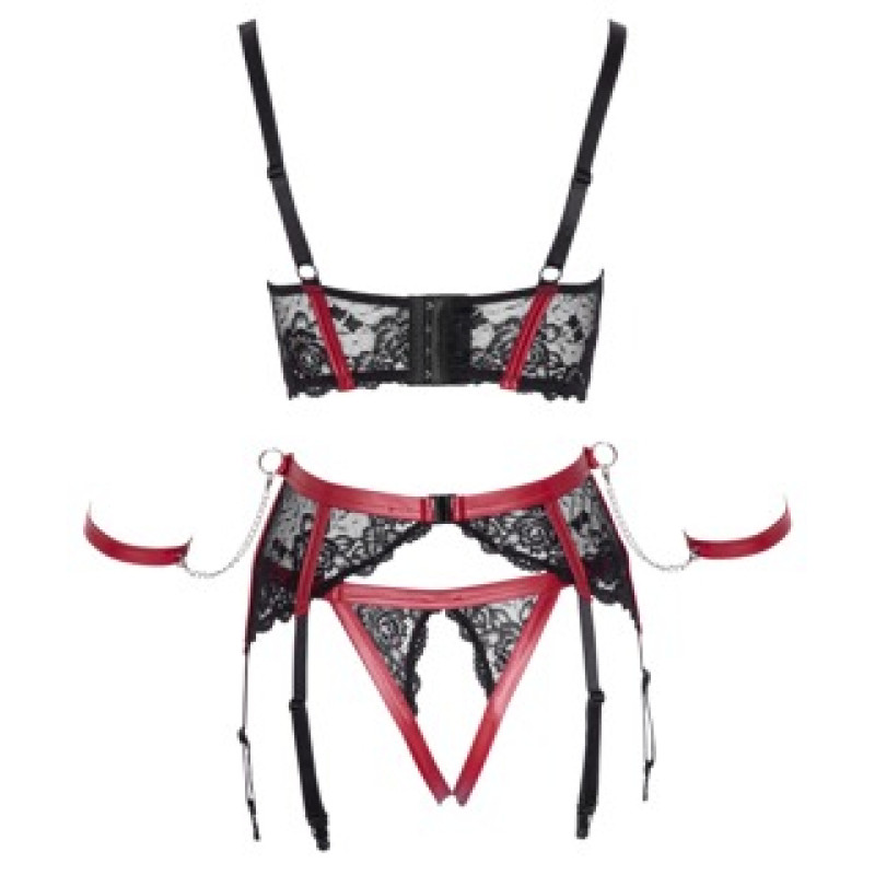 Cottelli Bondage Plauktu krūštura komplekts melns/sarkans M